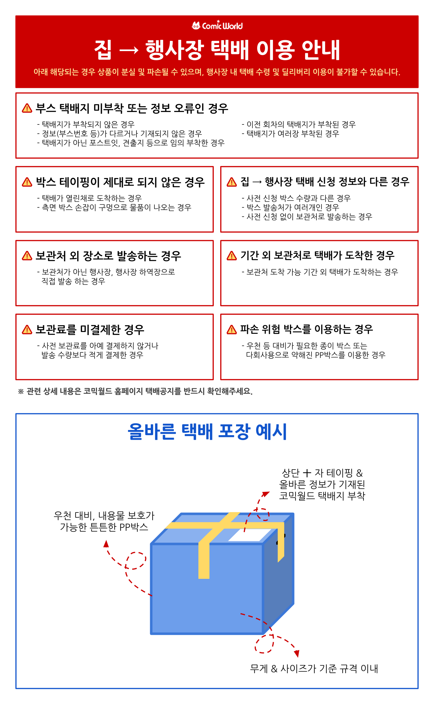 ※ [코믹월드 택배지] + [운송장] 미부착 택배는 행사장 운반이 불가합니다.