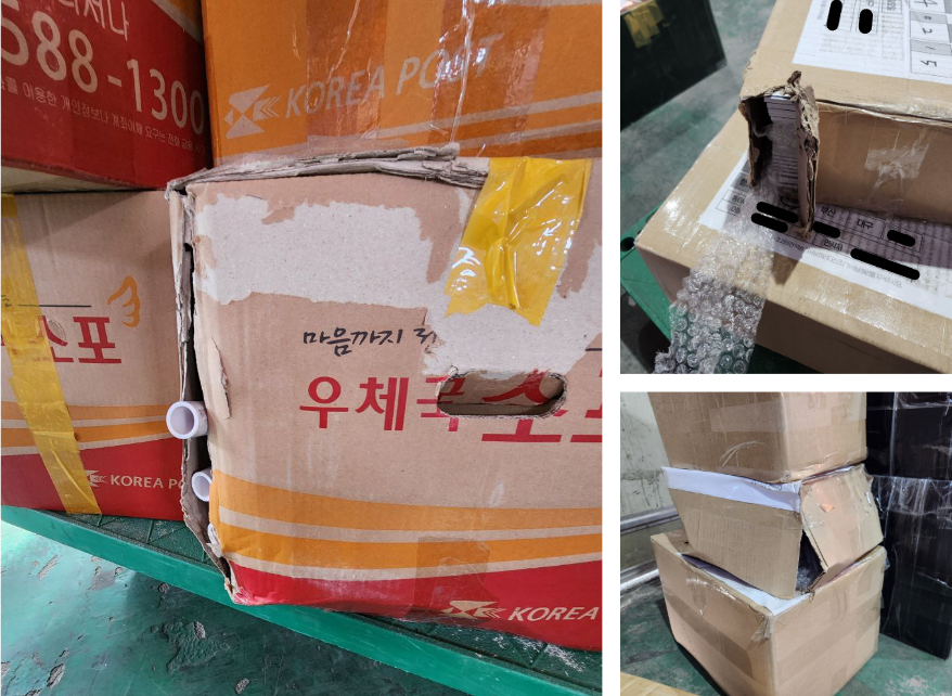 - 너무 얇은 박스와 같이 찢어지거나 파손이 쉬운 재질로 포장한 경우,