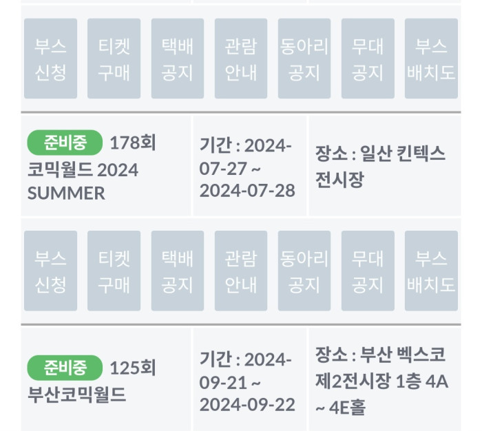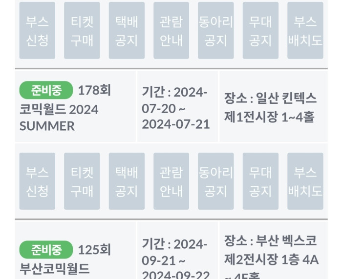 - 코믹월드 주최측에 대한 문의사항은 [1:1 문의]를 이용해주세요.