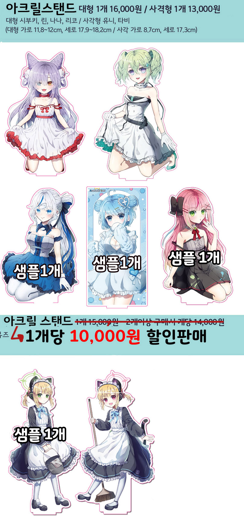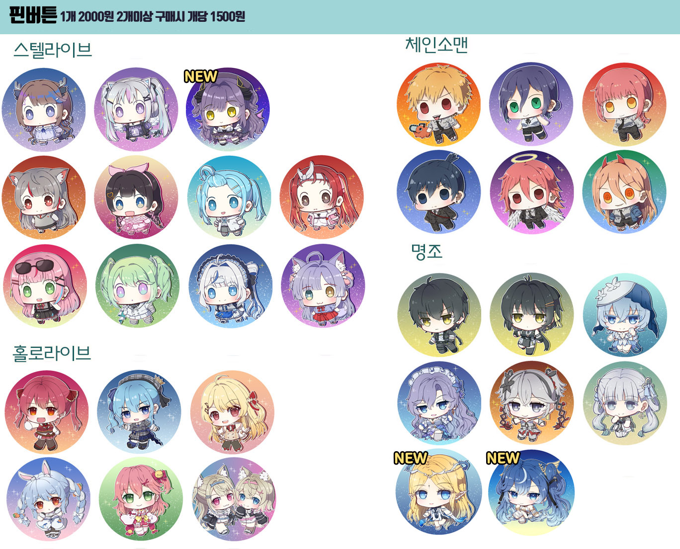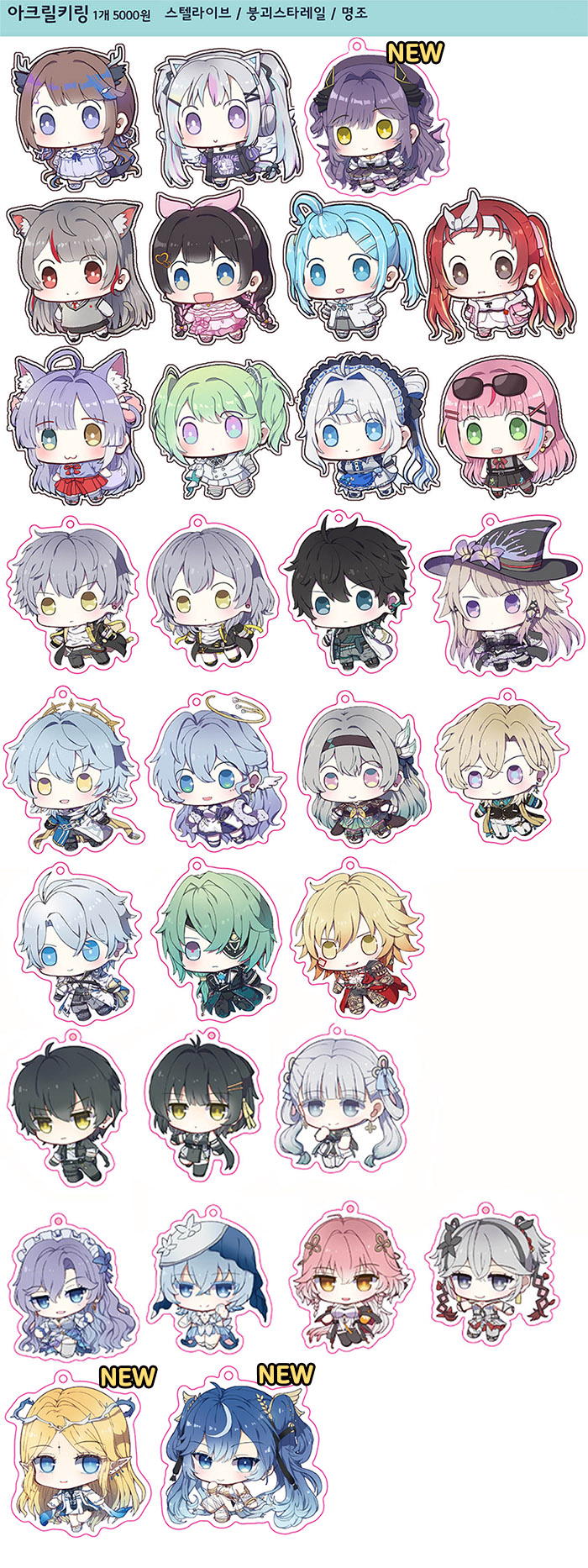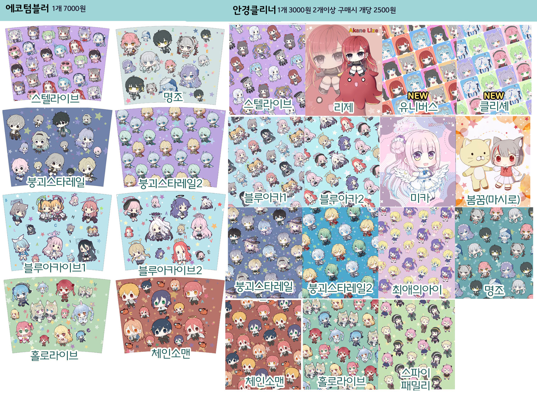 스텔라이브, 명조, 블루아카, 스타레일, 스파이패밀리, 원신등 보조배터리, 에코백, 텀블러, 아크릴키링등 굿즈나와요.