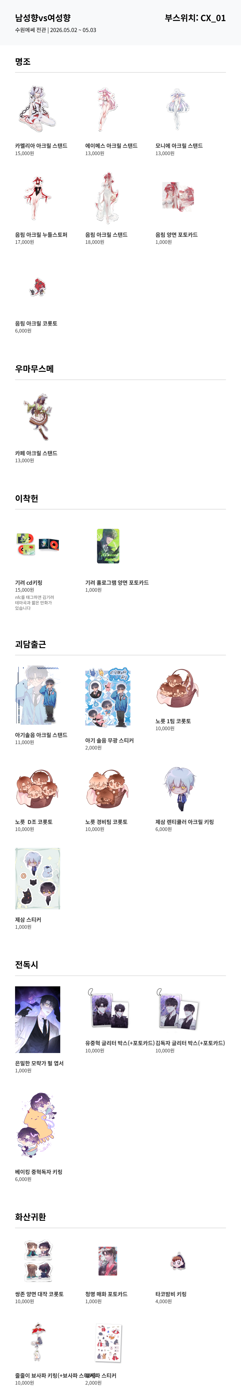 [5월 수코]명조, 괴담출근, 우마무스메, 전독시, 이착헌, 화산귀환 선입금 받습니다