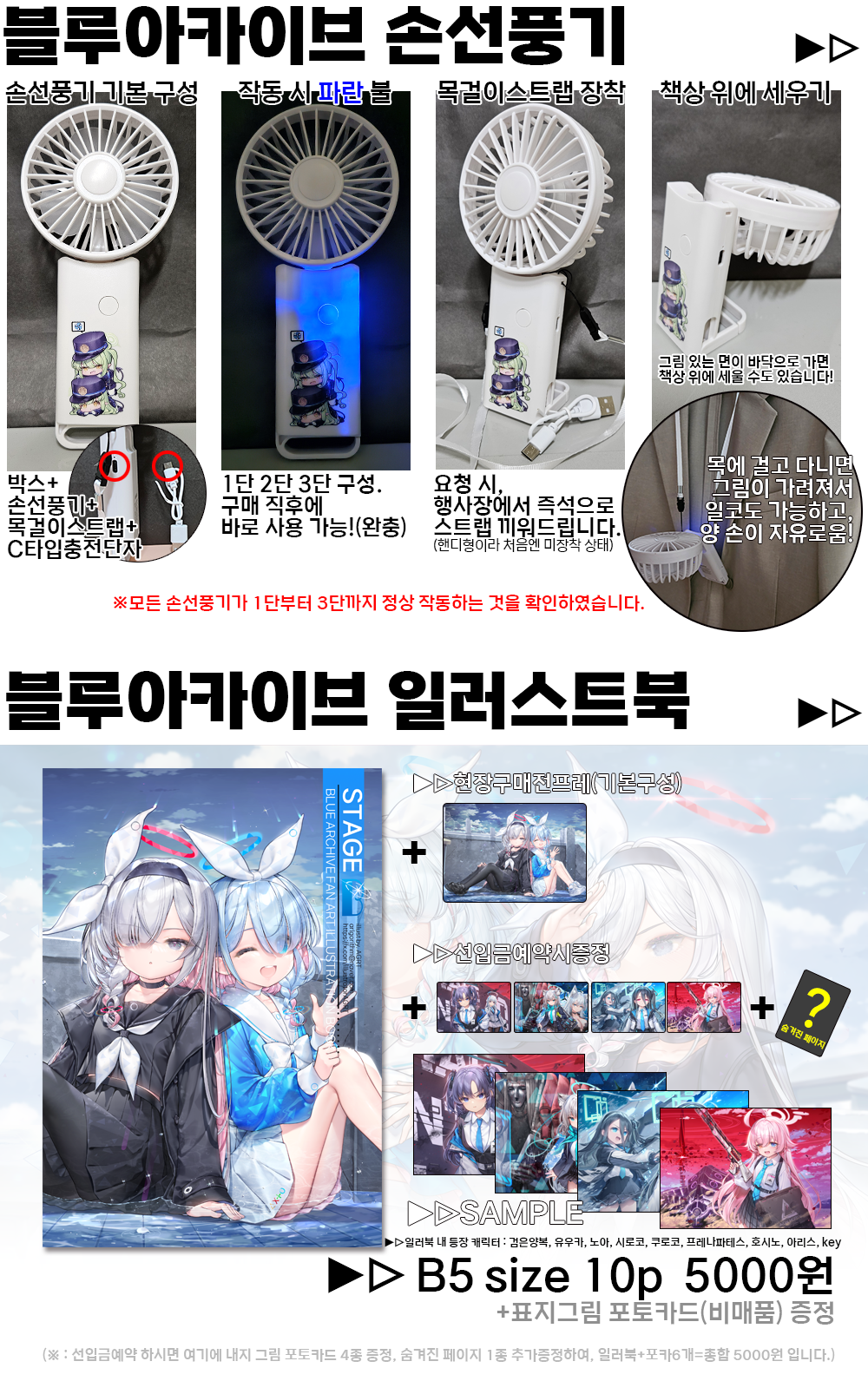 참가굿즈 : 일러스트북, 도킹형 보조배터리, 손선풍기