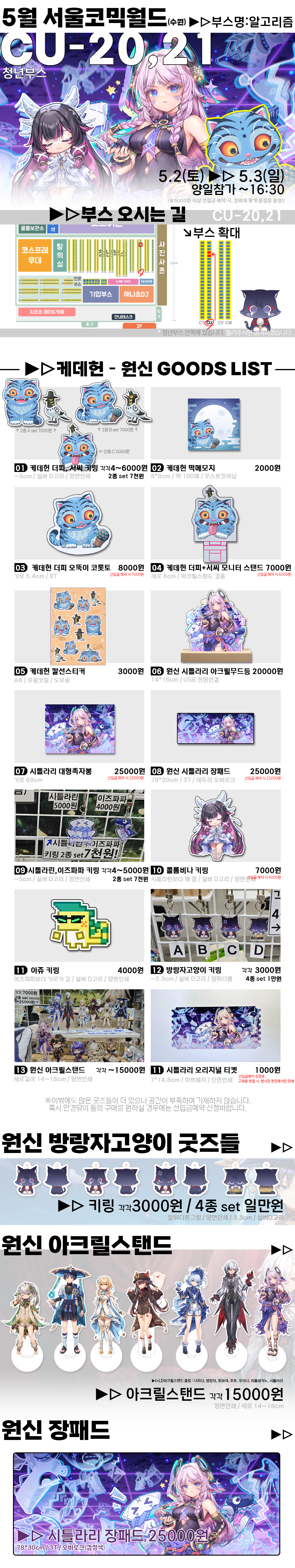 ↓5월 서코 원신&케데헌 윗치폼 선입금예약(각종 굿즈 할인多+5000원 이상 선입금예약 시 장르에 맞게 증정품 증정)