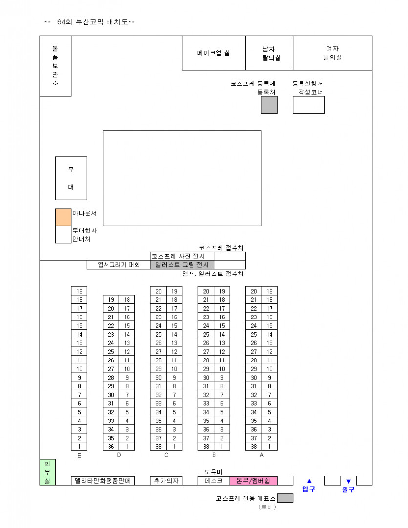 목록 64회 부산 코믹월드 전시장 배치도(8월) 페이지 정보 작성자 코믹월드 댓글 0건 조회 2,117회 작성일 10.08.10 본문 ※ 64회 부산 코믹월드 전시장 배치도 아래 그림을 클릭하면 좀 더 정확하게 전시장 배치도를 볼 수 있습니다. 행사정보 코믹월드 문구전