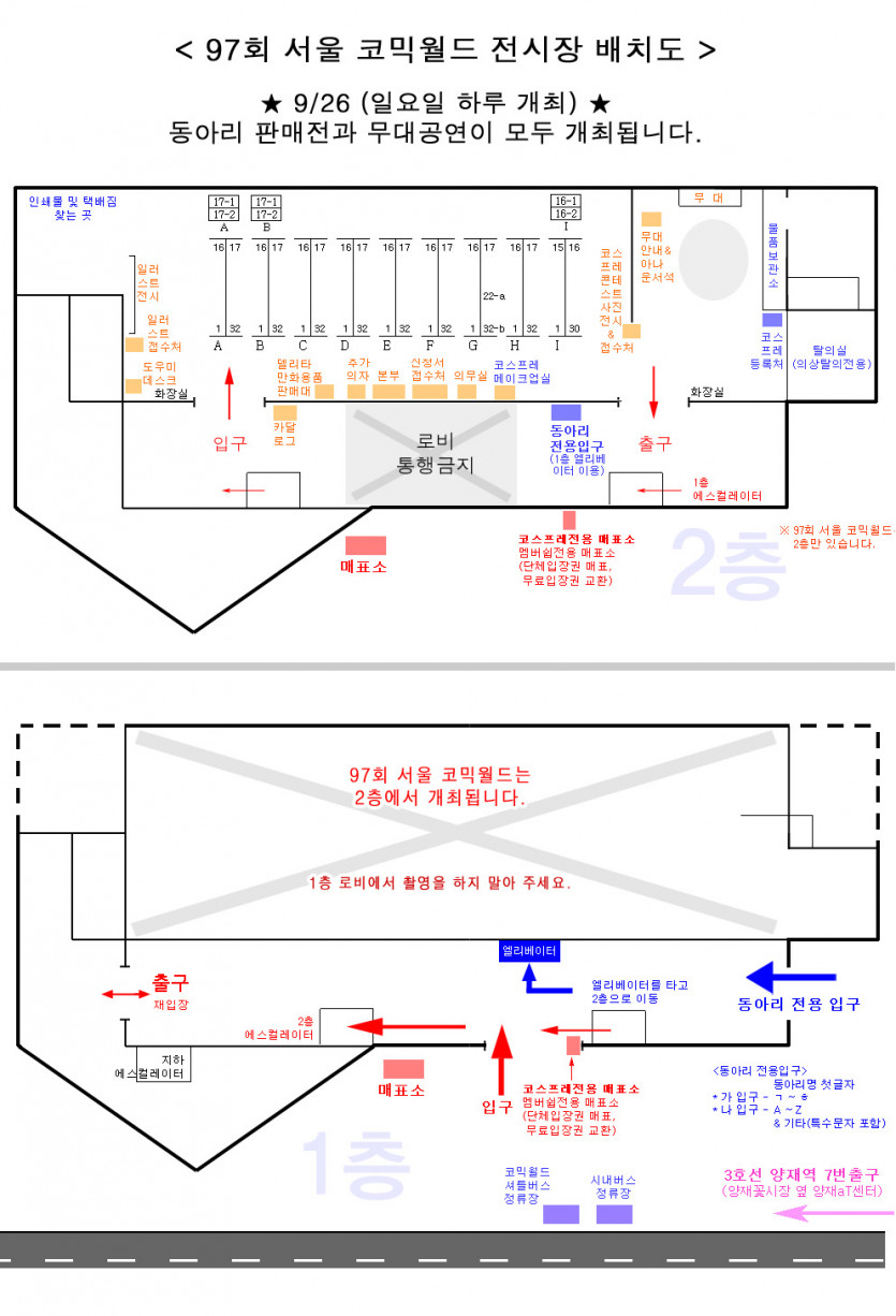 97회 서울 코믹월드 참가리스트&전시장배치도 (9월)