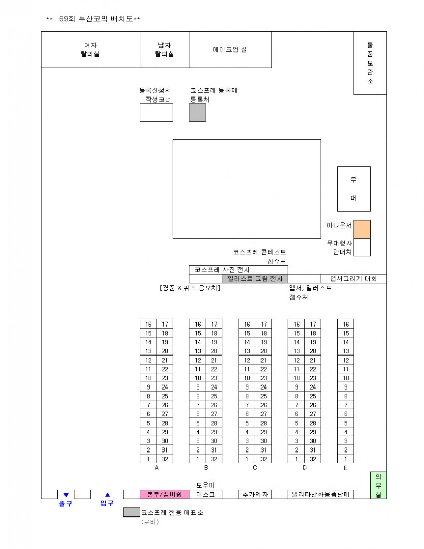 목록 69회 부산 코믹월드 전시장 배치도(7월) 페이지 정보 작성자 코믹월드 댓글 0건 조회 2,113회 작성일 11.06.27 본문 ※ 69회 부산 코믹월드 전시장 배치도 아래 그림을 클릭하면 좀 더 정확하게 전시장 배치도를 볼 수 있습니다. 행사정보 코믹월드 문구전
