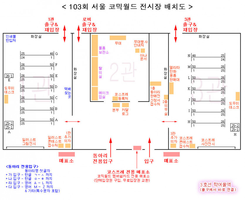 103회 서울 코믹월드 참가리스트&전시장배치도 (7월)
