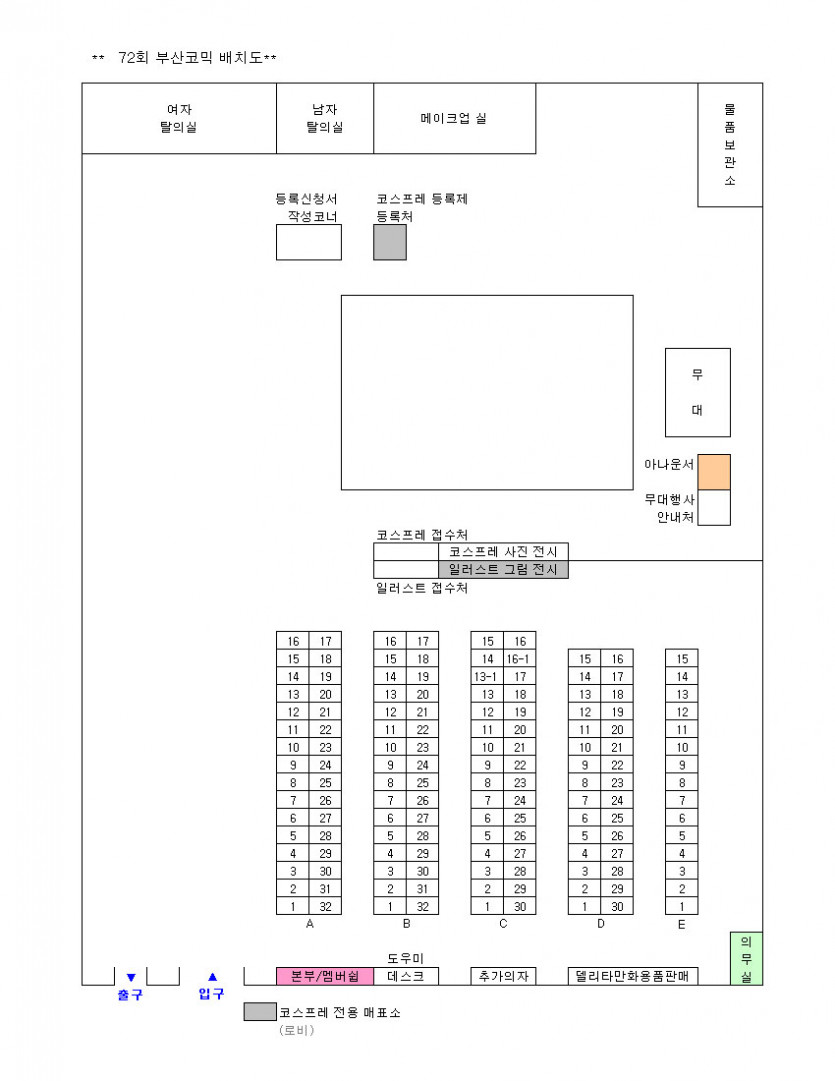 목록 72회 부산 코믹월드 전시장 배치도(12월) 페이지 정보 작성자 코믹월드 댓글 0건 조회 2,422회 작성일 11.11.21 본문 ※ 72회 부산 코믹월드 전시장 배치도 아래 그림을 클릭하면 좀 더 정확하게 전시장 배치도를 볼 수 있습니다. 행사정보 코믹월드 문구전