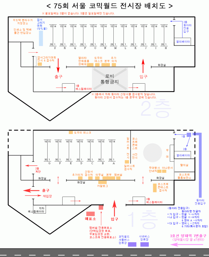 75회 서울 코믹월드 참가리스트&전시장배치도 (4/25)