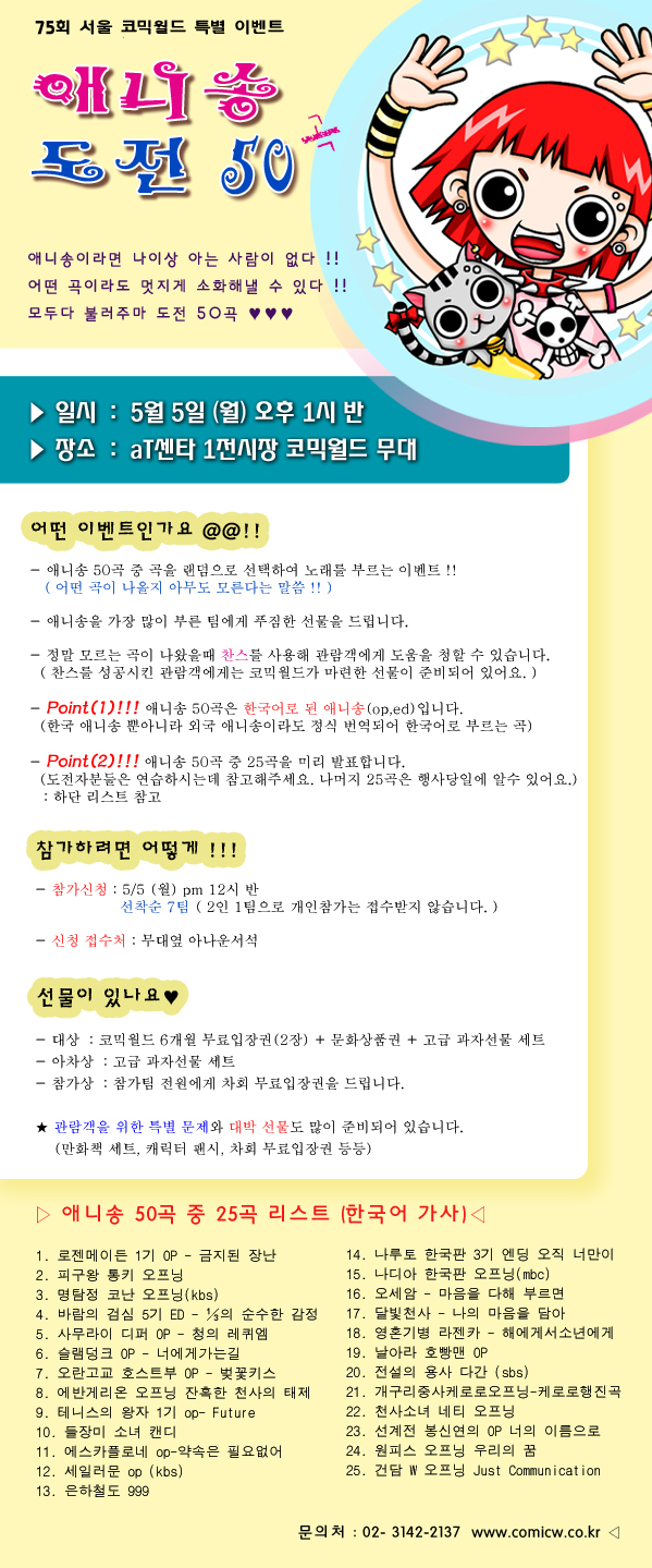 75회 서울 코믹월드 - 애니송 도전 50곡(5/5 1시반)