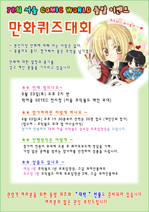 78회 서울 코믹월드 - 만화퀴즈대회(8/23 토 오후2시반)