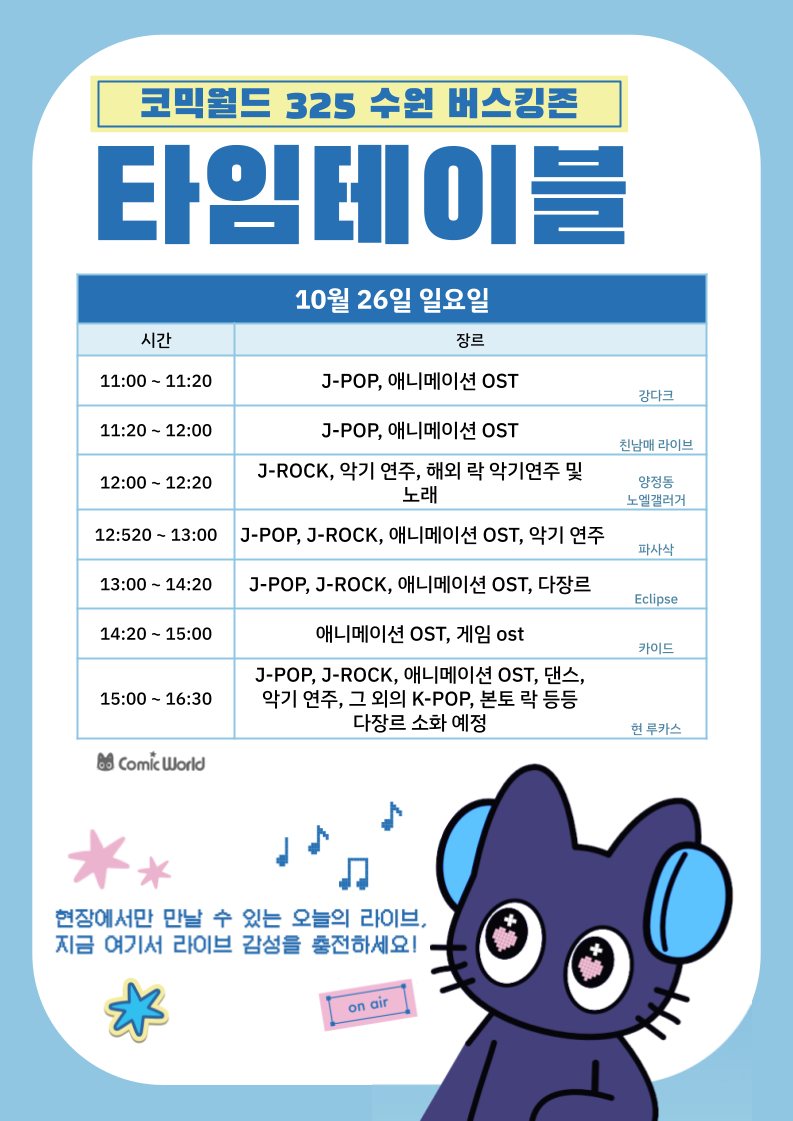 서울 코믹월드 325 수원 (10월) 코스튬플레이 무대 이벤트 참가자 리스트