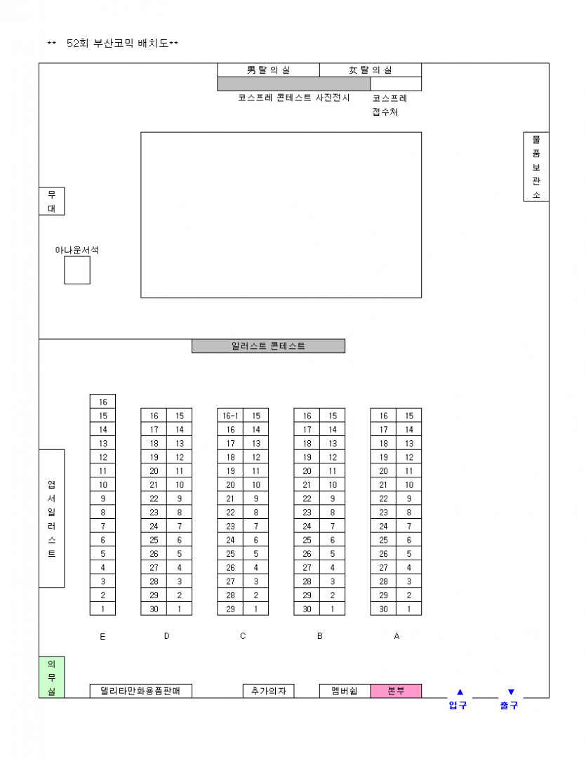 목록 52회 부산 코믹월드 전시장 배치도(12월) 페이지 정보 작성자 코믹월드 댓글 0건 조회 2,881회 작성일 08.12.01 본문 ※ 52회 부산 코믹월드 전시장 배치도 아래 그림을 클릭하면 좀 더 정확하게 전시장 배치도를 볼 수 있습니다. 행사정보 코믹월드 문구전