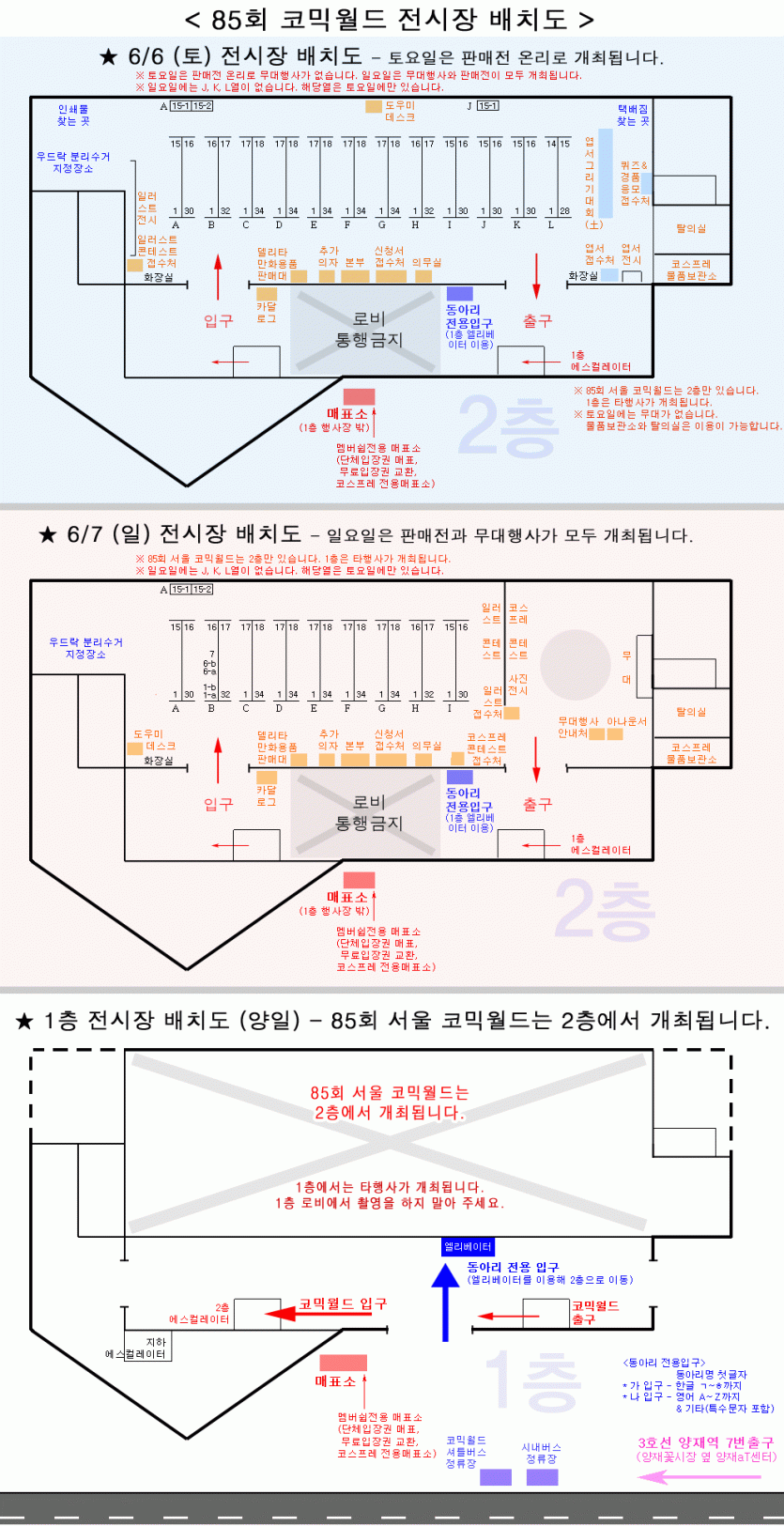 85회 서울 코믹월드 참가리스트&전시장배치도 (6월)