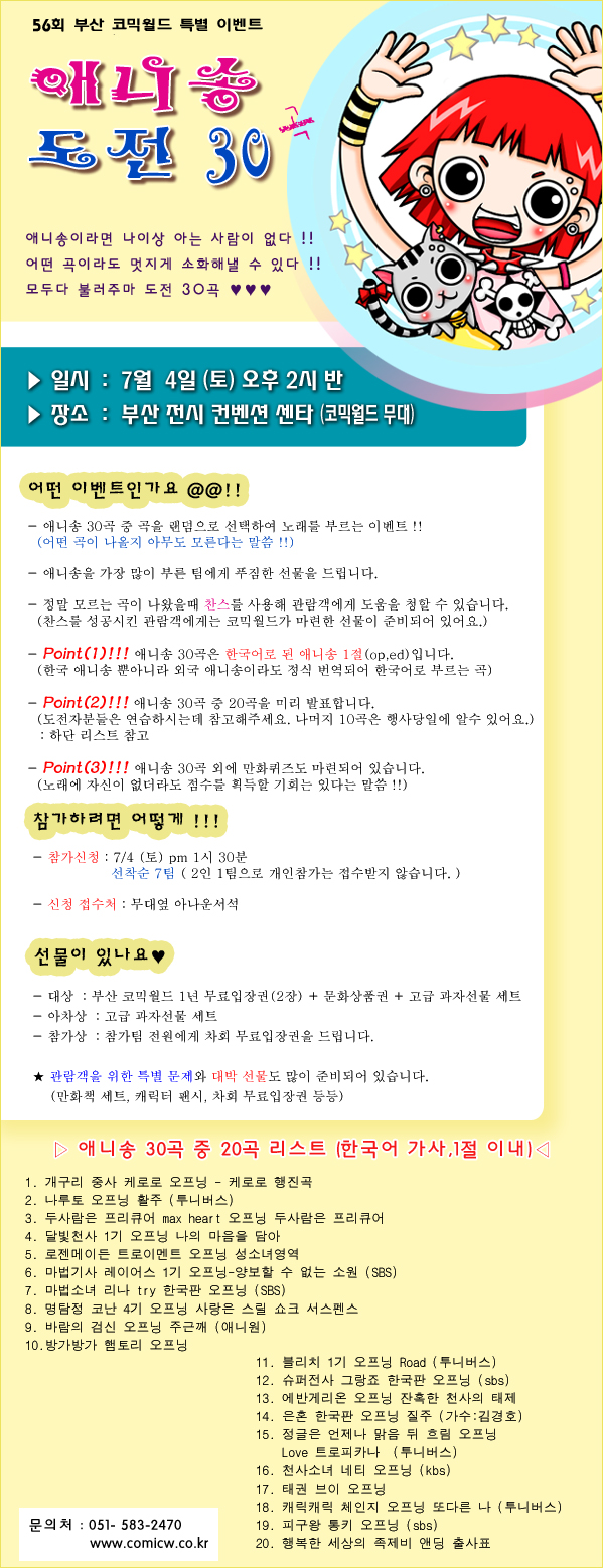 목록 56회 부산 코믹월드 - 애니송 도전 30곡(7/4토 오후2시반) 페이지 정보 작성자 코믹월드 댓글 0건 조회 2,500회 작성일 09.06.19 본문 56회 부산 코믹월드 - 애니송 도전 30곡(7/4토 오후2시반) 행사정보 코믹월드 문구전