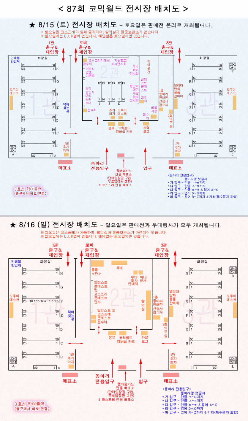 87회 서울 코믹월드 참가리스트&전시장배치도 (8월)
