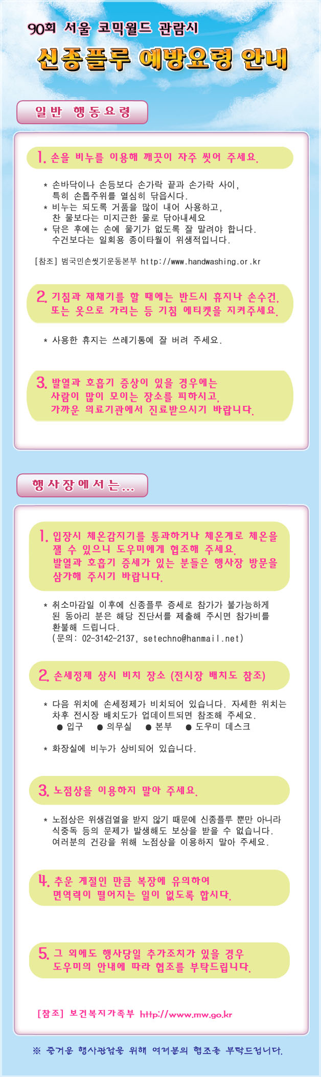90회 서울 코믹월드 관람시 신종플루 예방요령 안내
