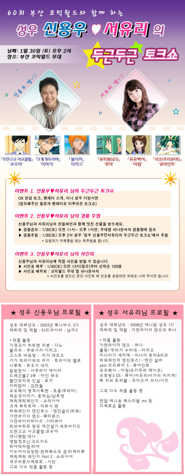 목록 60회 부산 코믹월드-성우 신용우,서유리의 두근두근 토크쇼(상세) 페이지 정보 작성자 코믹월드 댓글 0건 조회 2,437회 작성일 10.01.28 본문 많은 관심 부탁드립니다. * 코믹월드님에 의해서 게시물 복사되었습니다 (2010-01-28 16:14) 행사정보 코믹월드 문구전