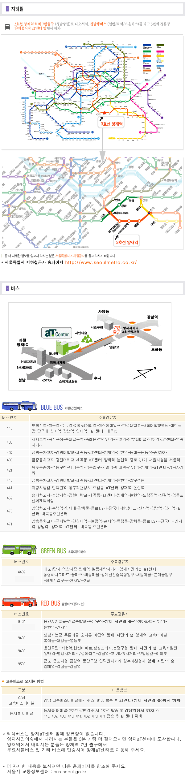 혹은 http://www.atcenter.co.kr 의 교통편을 참조해 주시기 바랍니다.