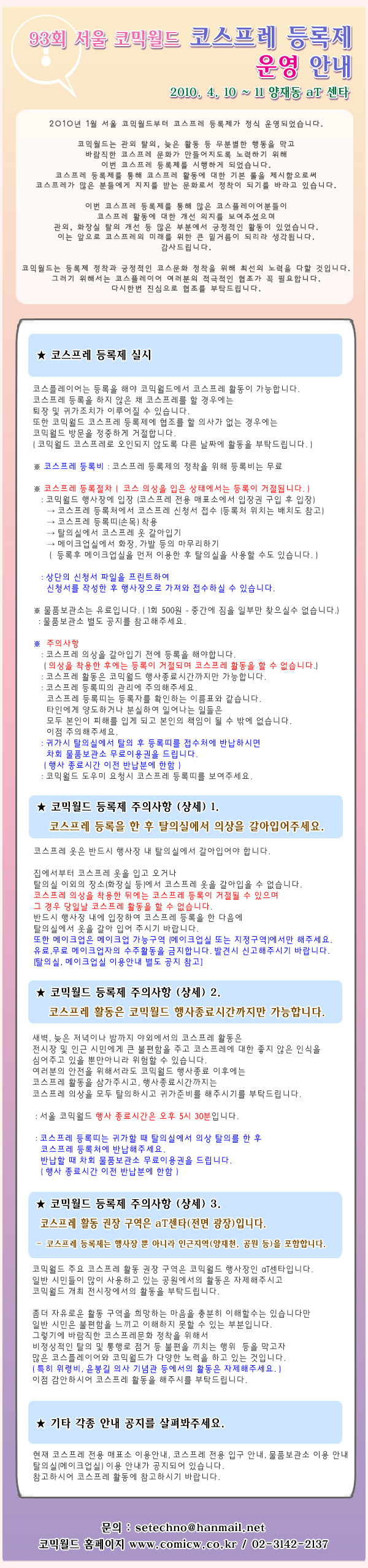93회 서울 코믹월드 [코스프레 등록제 운영 안내] 신청서 첨부