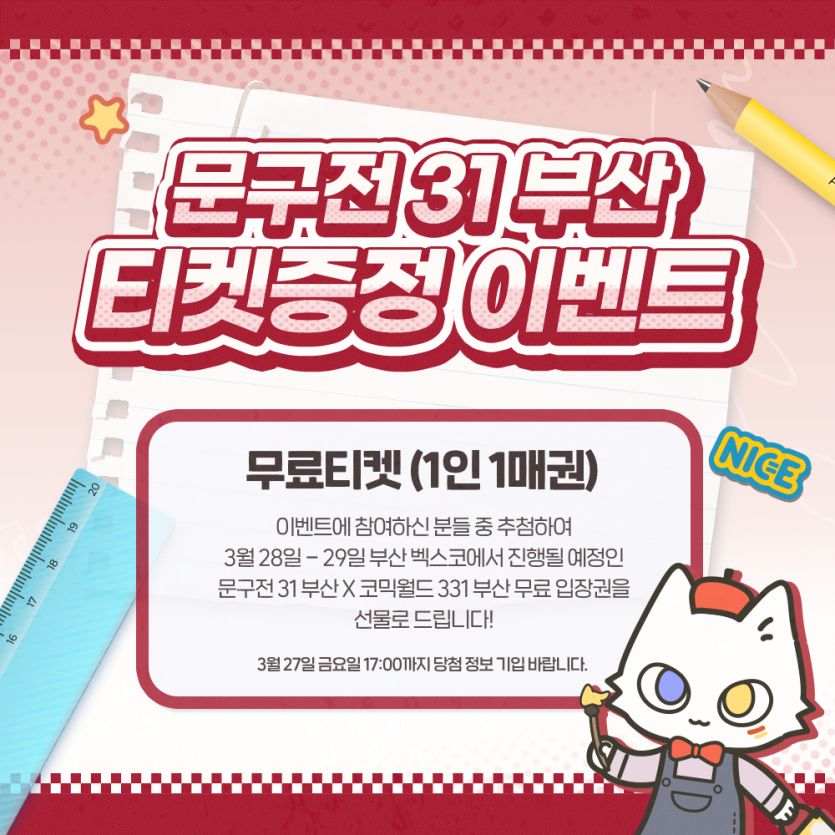 [문구전 31 부산] 1인 1매 입장권 당첨을 축하드립니다!